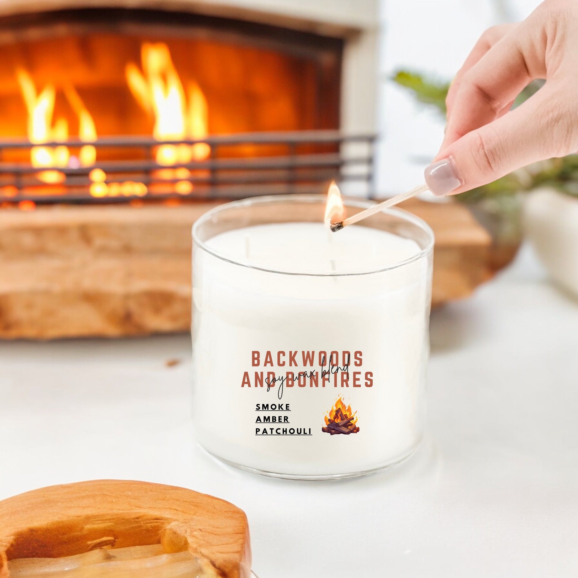 Picture yourself sitting by a toasty fire, free of pesky bugs, with our Backwoods and Bonfires Candle. This unique scent mixes hints of smoke and wood, creating a cozy blend of clove, amber, sandalwood, and patchouli.