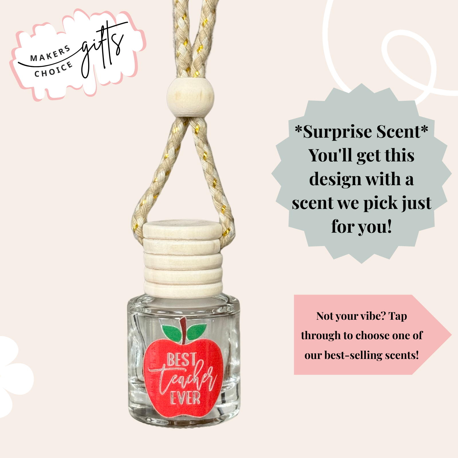 Our hanging scented car fresheners are the perfect blend of style and scent! Designed to dangle from your rearview mirror, each car diffuser features a unique design printed right on the bottle— Our Decorated Car Fresheners are truly the best on the market! No bland labels, just amazing scents and cuteness that lasts!
