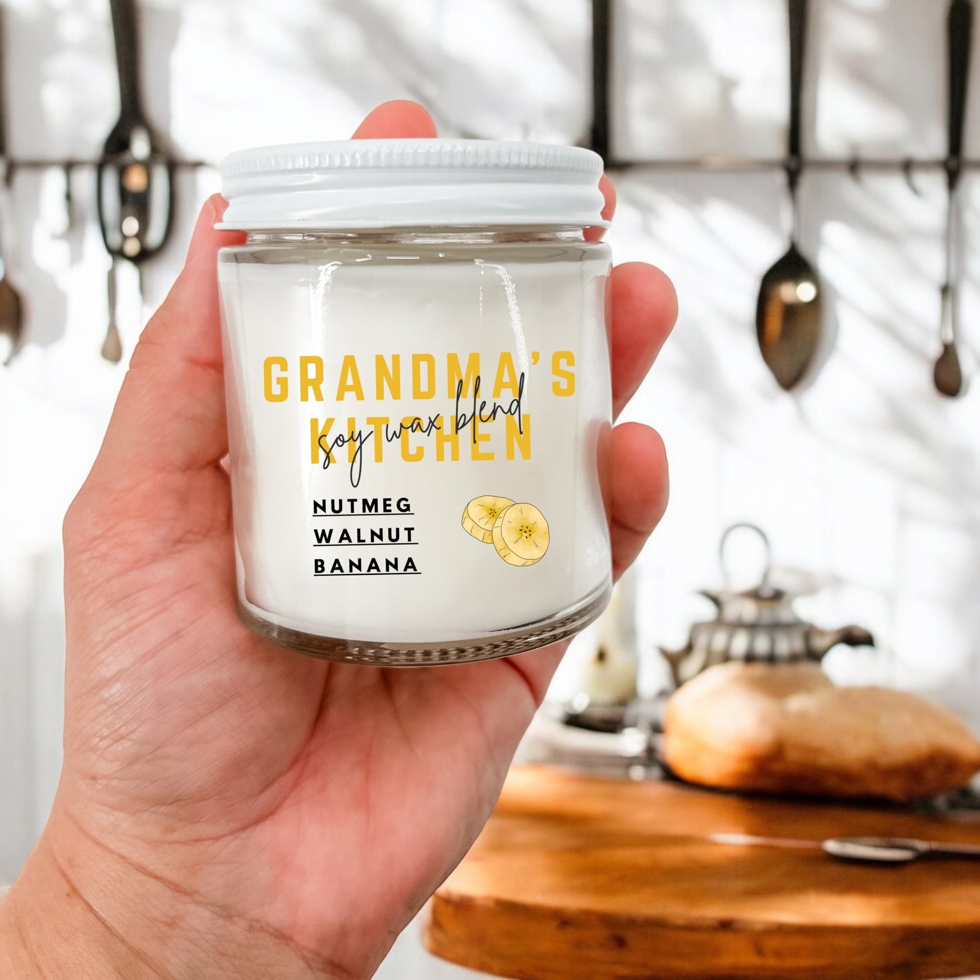 Get a whiff of our delectable Grandma's Kitchen Candle! Take in the delicious aromas of a traditional homemade Banana Nut Bread, complete with fragrant toasted walnut, ripe banana, and a touch of nutmeg and sugar. The perfect combination of nutty and sweet, this scent also features hints of vanilla and cake, creating a warm and cozy fragrance that will make your taste buds tingle or inspire you to hit the kitchen!