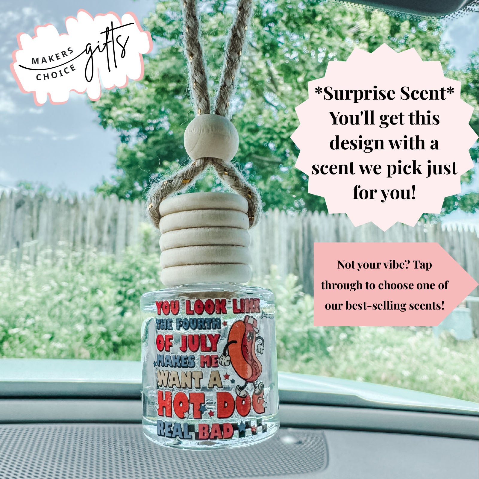 Choose your favorite scent to pair with this bold & fun design, or let us pick for you by choosing Surprise Scent. Either way, get ready to make your car as bold as your vibe—because no matter what you choose, it’s going to smell amazing!