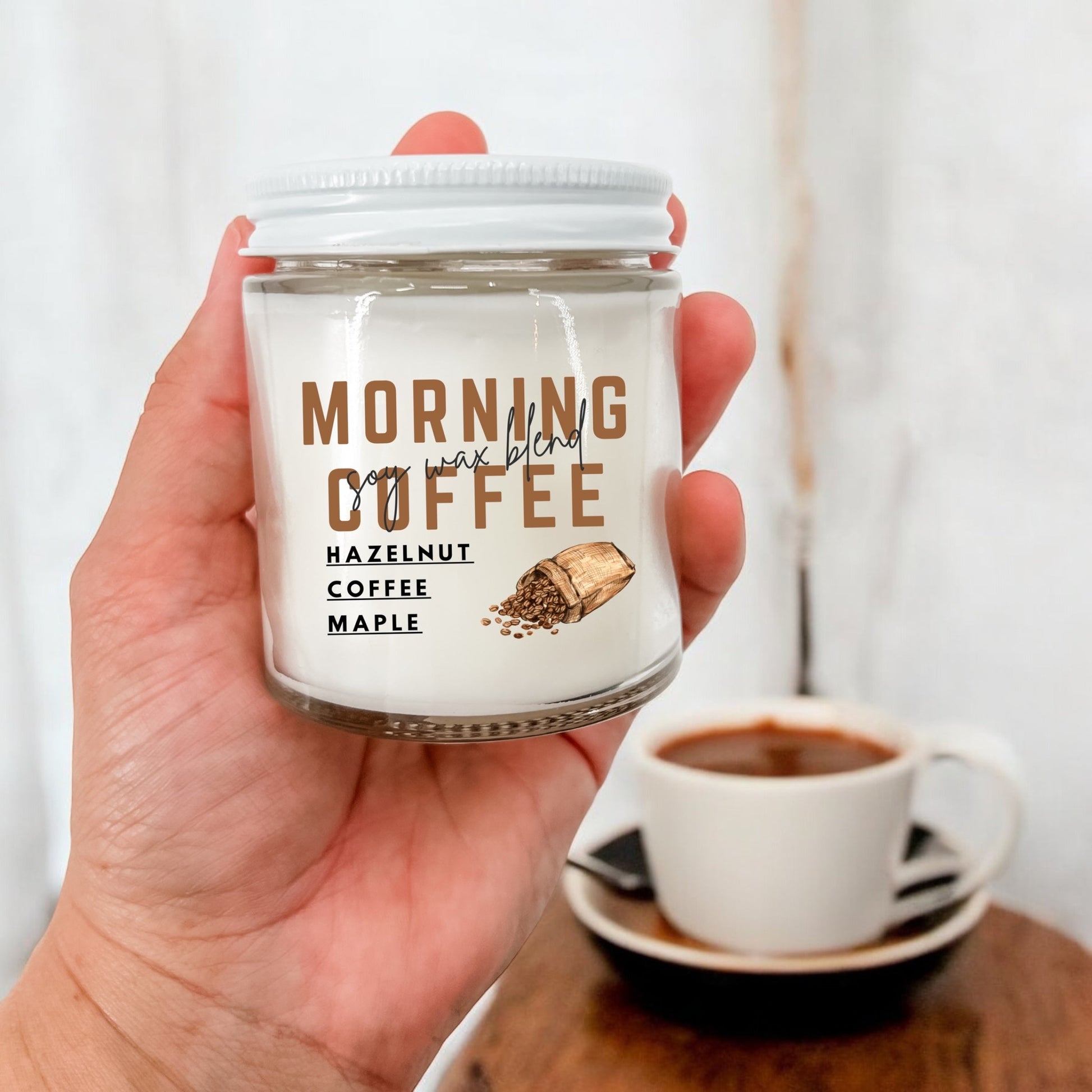 Who doesn't love the smell of fresh-brewed coffee in the morning? With our Morning Coffee Candle, you can enjoy that rich, roasted hazelnut aroma any time of day!Featuring the rich, warm aromas of fresh brewed hazelnut coffee, this candle is sure to get you going. With notes of toasted hazelnut, fresh coffee, and a touch of maple and cream, it's like having a freshly brewed pot right at your fingertips.