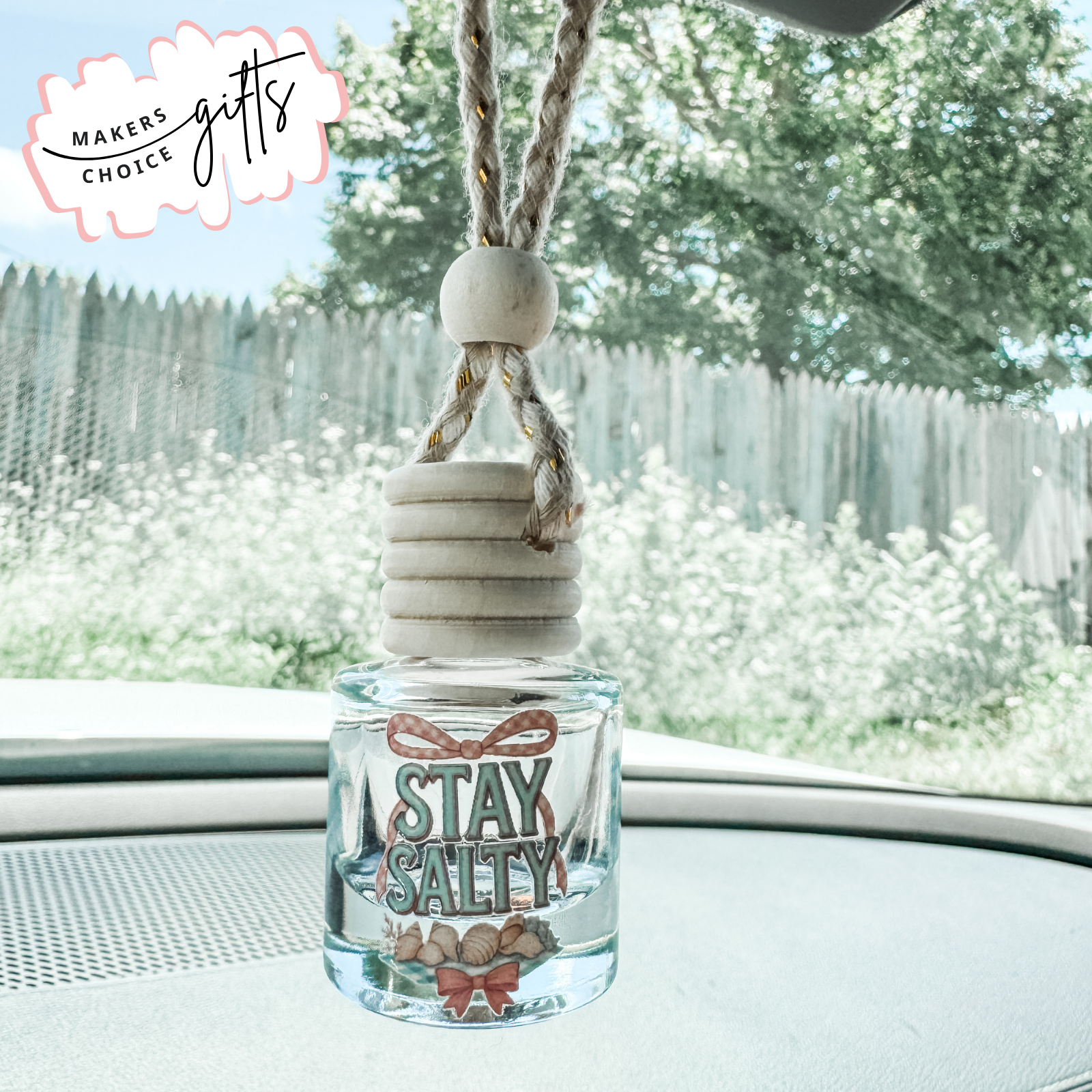 Our hanging scented car fresheners are the perfect blend of style and scent! Designed to dangle from your rearview mirror, each car diffuser features a unique design printed right on the bottle— Our Decorated Car Fresheners are truly the best on the market! No bland labels, just amazing scents and cuteness that lasts!